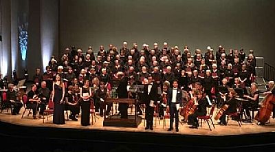 This photo of assembled choir, orchestra and soloists is courtesy of Anna Heywood, our soprano soloist.