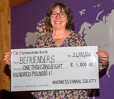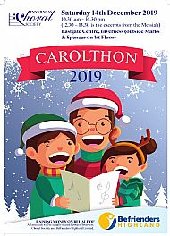 Our Carolthon this year took place on Saturday 14th December, 2019 in the Eastgate Centre (upstairs, adjacent to Chisholm Hunter jewellers). We had groups singing between 10.30 am to 4.30pm. The "lunchtime" slot between 12.30pm and 1.30pm had a larger choir and included some pieces from "Messiah". As usual we are partnered in fundraising with a local charity. This year it was Befrienders Highland, who work to improve the lives of people who are lonely and isolated and have experience of mental ill health, memory difficulties or dementia, and carers.