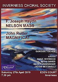 Our next concert at Eden Court Theatre is Joseph Haydn's Nelson Mass and John Rutter's Magnificat on Saturday 27th April 2019.